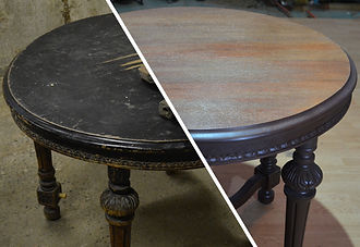 Реставрация старинного деревянного столика. В процессе реставрации этот столик был разобран, очищен от всех предыдущих слоёв краски, дерево укреплено, в ножки столика вставлены деревянные штифты, а поверхность столешницы выровнена до максимально ровного состояния, после чего столик был собран, окрашен, декорирован сусальным золотом и покрыт лаком.