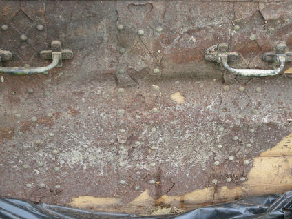 Сундук с удивительной историей. Благодаря этому сундуку в голодные годы начала XX века выжила целая семья. Его хозяин, потомок донских казаков, в память о своих предках решил восстановить сундук, невзирая на возражения домочадцев. Была проведена реконструкция сундука - укреплена деревянная основа, осуществлена обивка новым металлом и вырезаны декоративные накладки, после чего окрашены. Вся фурнитура сундука - ручки, петли и прочие элементы - сохранились и были очищены от грязи, а замок отремонтирован с восстановлением возможности закрывания его на ключ. Внутри сундук обтянут новой тканью.