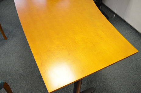 Реставрация современной офисной мебели также вполне актуальное явление. Столешницы подвержены сильному износу, так как стол - это рабочий инструмент, который каждый день используется. Чашки, кружки, письменные принадлежности, прочие предметы - острые и тупые, всё это оставляет следы на плоскости столешниц и со временем их хочется обновить, вернуть былую новизну. Стол ведь хороший! Он привычен, красив, эргономичен, всего-то только заменить лаковое покрытие и выровнять вмятинки и сколы. Реставрацию офисного стола можно выполнить даже без создания особенных препятствий офисному производственному процессу. Так как большинство офисов работает 5/2, мы в пятницу забираем стол на реставрацию, за выходные сошлифовываем старое лакокрасочное покрытие, устраняем сколы и царапины на шпоне, покрываем стол новым лаком, а в понедельник, после проведения всех работ, отреставрированный стол возвращается к Вам в офис. Чист, нов и прекрасен! И вы с чувством удовлетворения принимаете гостей, клиентов и проводите переговоры с партнёрами.